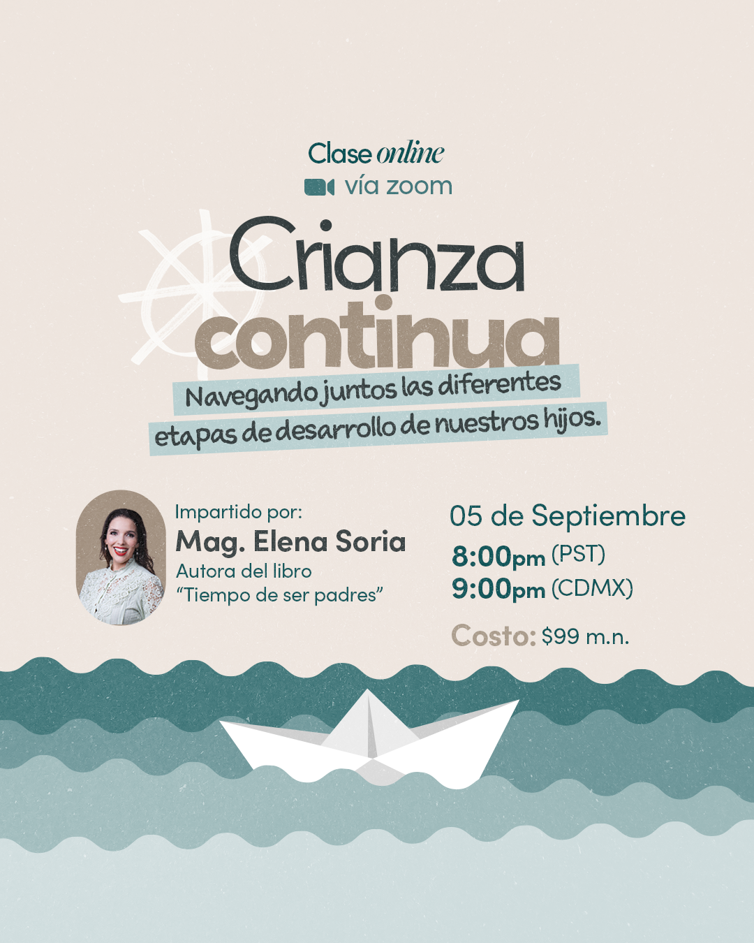 Para eso he diseñado una clase online para padres comprometidos que desean seguir aprendiendo a través de herramientas prácticas cómo llevar su crianza al siguiente nivel. Durante "Crianza Continua: Navegando juntos las diferentes etapas de desarrollo de nuestros hijos", abordaremos las claves para comprender las etapas de desarrollo, los desafíos que enfrentamos como padres en estas transiciones y cómo navegar por cada fase con confianza.